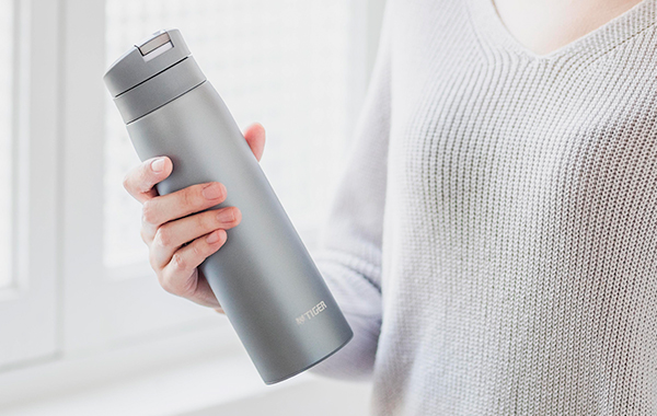 Nhấn nút xuống và đẩy về phía trước. Nắp được mở bằng một lần lần nhấn và sẽ tự động khóa khi bạn đóng nắp. Chức năng tự động khóa sẽ giúp bạn không lo quên khóa bình nước mỗi khi để trong túi xách. Đóng và mở nắp dễ dàng hơn so với các sản phẩm thông thường nhờ thiết kế mới.
