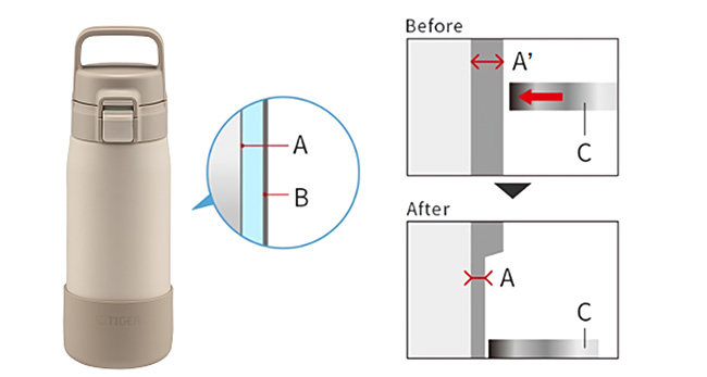 Chất liệu: Thân và ruột bình inox 304, nắp bình nhựa PP an toàn, gioăng silicone