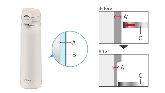 Phương pháp kéo sợi bằng thép không gỉ độc quyền của Tiger giúp giảm độ dày để tạo ra loại bình cực kỳ nhẹ. Bình dung tích 0,5L nặng khoảng 210g, khiến chiếc bình nhẹ này rất lý tưởng để mang theo khi đi ra ngoài.