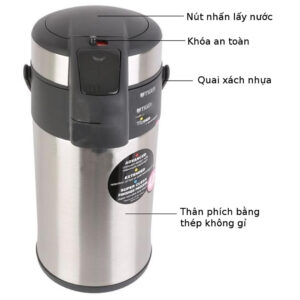 • Có nắp khóa an toàn, rót nước bằng cách nhấn vào pittông trên nắp