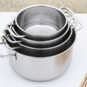Bộ nồi gồm có 4 nồi: nồi nhỏ 16 cm kho, om, 2 nồi trung 18 cm và 20 cm nấu canh, nồi lớn 24 cm luộc gà nguyên con khoảng 1.5 kg.