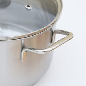 Tay cầm bằng inox cao cấp gắn chắc chắn với thân nồi, thiết kế không cách nhiệt nên cần găng tay khi sử dụng nấu nướng.
