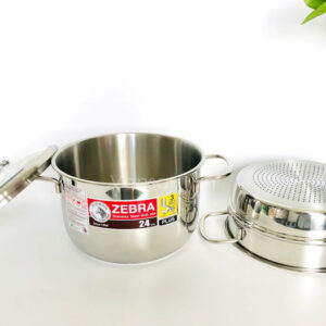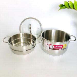 Bộ xửng hấp Zebra sản xuất tại Thái Lan có nắp bằng kiếng giúp bạn dễ dàng quan sát thực phẩm khi hấp – nấu