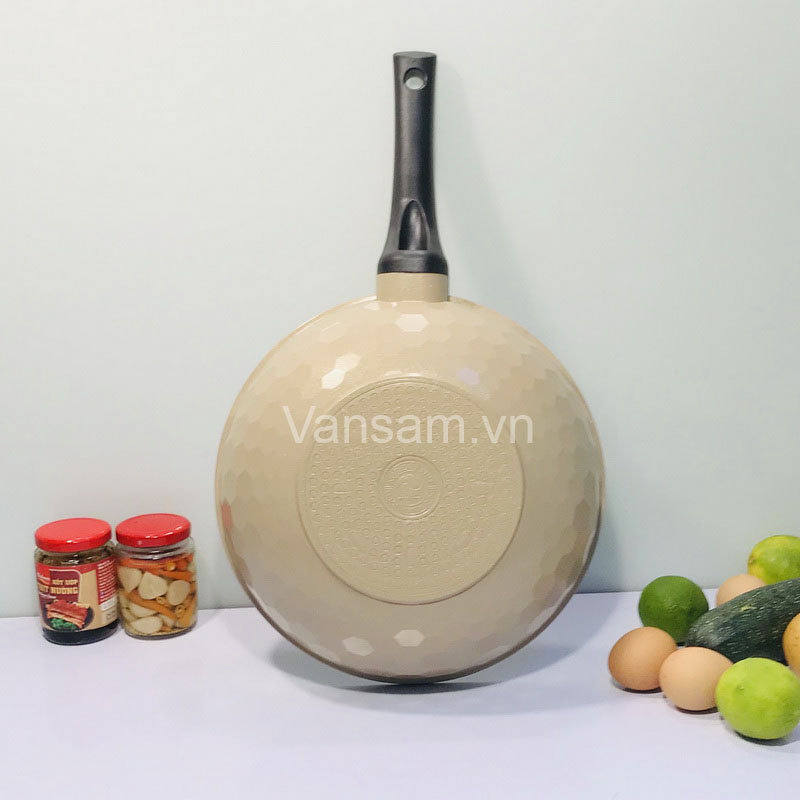 Đáy chảo thiết kế đáy từ nguyên bản nên phù hợp sử dụng với tất cả các loại bếp: Bếp từ, bếp gas, bếp hồng ngoại, ….