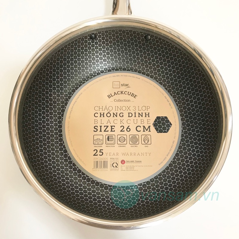 Chảo inox 304 Fivestar Blackcube chống dính 26cm