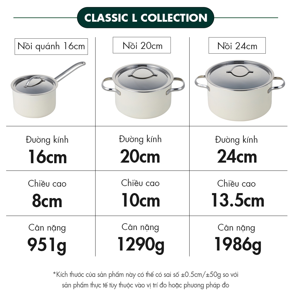 Đường kính 24cm, cao 13.5cm, nặng 1986 g